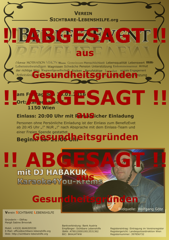 Bank: Bank Austria | Empfänger: Sichtbare Lebenshilfe | IBAN: AT901200010013531362 | BIC: BKAUATWW A - 1120 Wien | +43(0)66499828740 | office@sichtbare-lebenshilfe.org